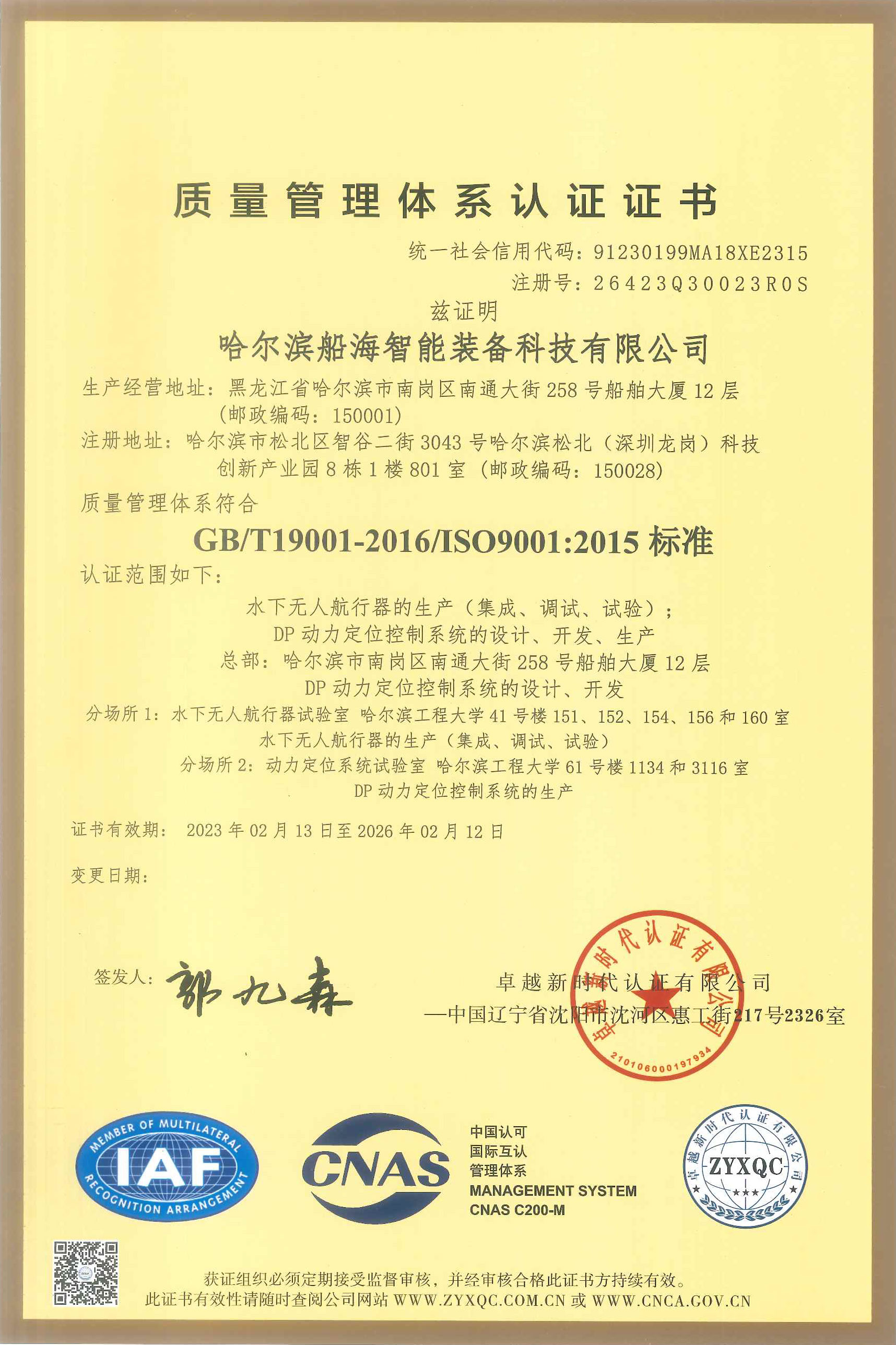 质量管理体系认证证书